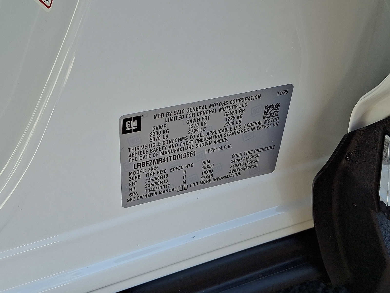 - Tires, P235/60R18 all-season
